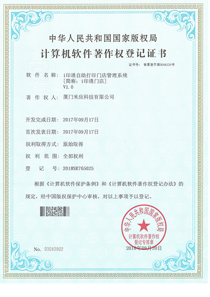截至2018年10月,爱印通获得国家专利、商标、著作权共36项